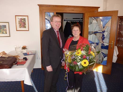 Matthias Baaß, Bürgermeister der südhessischen Stadt Viernheim und Fraktionschef der SPD in der Metropolregion, nahm dies zum Anlass, seiner Fraktionskollegin Inge Volz anlässlich der jüngsten Sitzung des Fraktionsvorstandes im Hotel-Restaurant “Ratsstube” im badischen Sinsheimer Stadtteil Dühren, mit einem Blumenstrauß im Namen ihrer Fraktionskollegen zu gratulieren und auf weitere Jahre guter Zusammenarbeit anzustoßen.