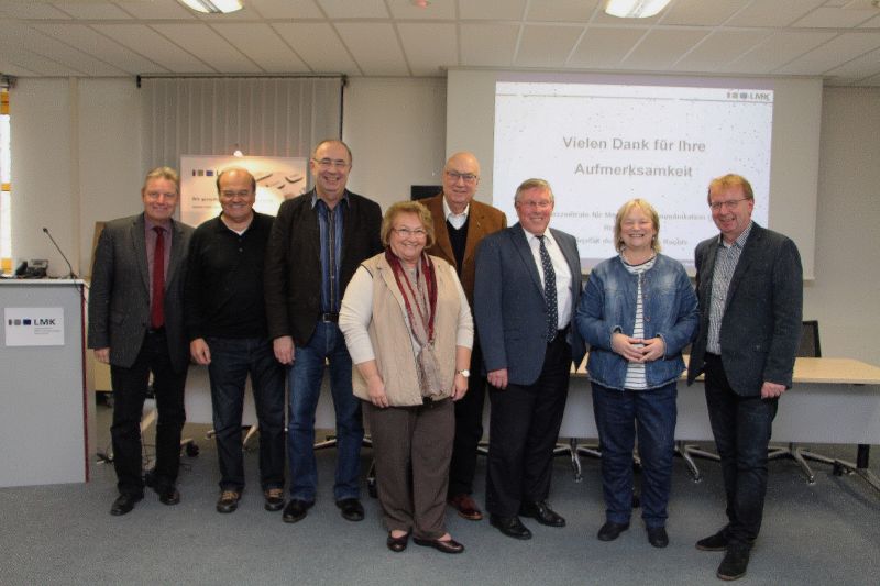LMK-Direktorin Renate Pepper 82. v. r.) mit einigen Teilnehmern an der Veranstaltung Besuch bei der Landeszentrale für Medien und Kommunikation in Ludwigshafen.